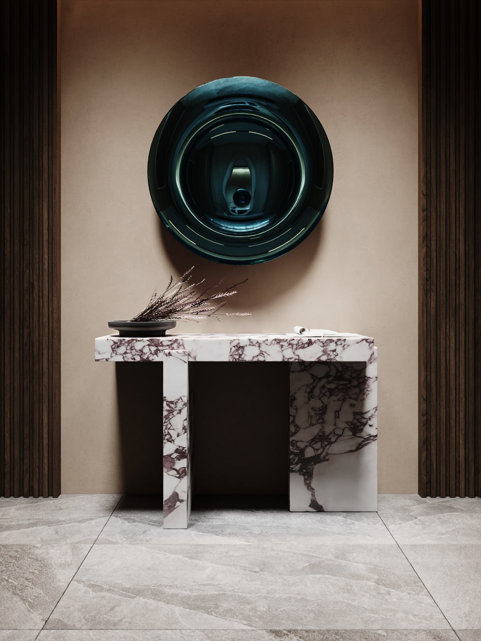 Консоль ГРАВИТАЦИЯ – это эффектный акцент для вашего современного интерьера. Сочетание лаконичного металлического каркаса и роскошных вставок из натурального мрамора создает неповторимый образ. Идеально подойдет для прихожей, холла или гостиной, добавляя изысканность и функциональность. Динамичный ритм повторяющихся арок может гармонично сочетаться с круглым зеркалом, создавая стильный и завершенный ансамбль.