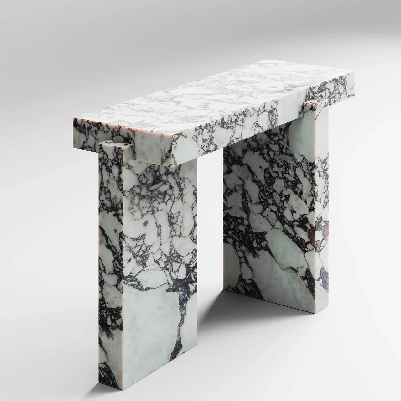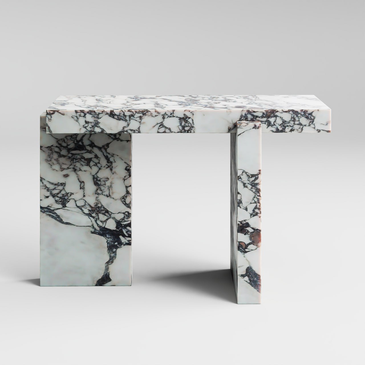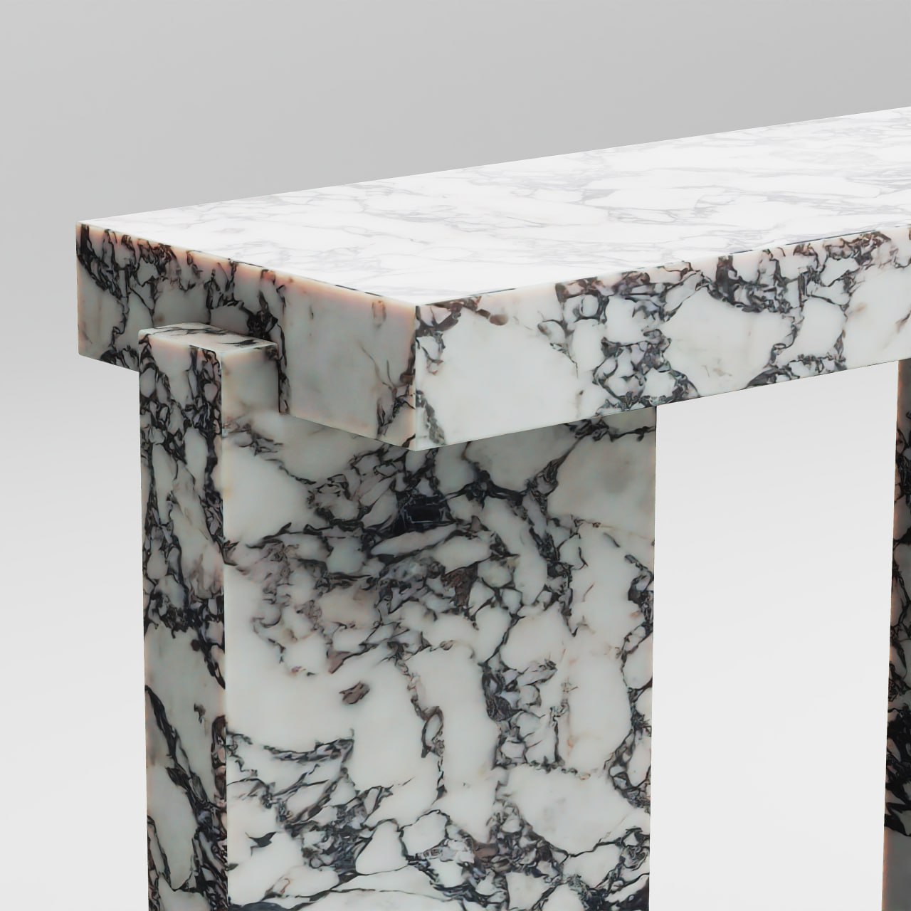 Консоль ФОРМА выполнена из мрамора с модной текстурой Calacatta Viola. Три массивных объема, врезанные друг в друга, создают образ устойчивого и монументального предмета мебели. Консоль из натурального камня добавит парадности помещению, а розовый цвет создаст легкую атмосферу и добавит свежести интерьеру.