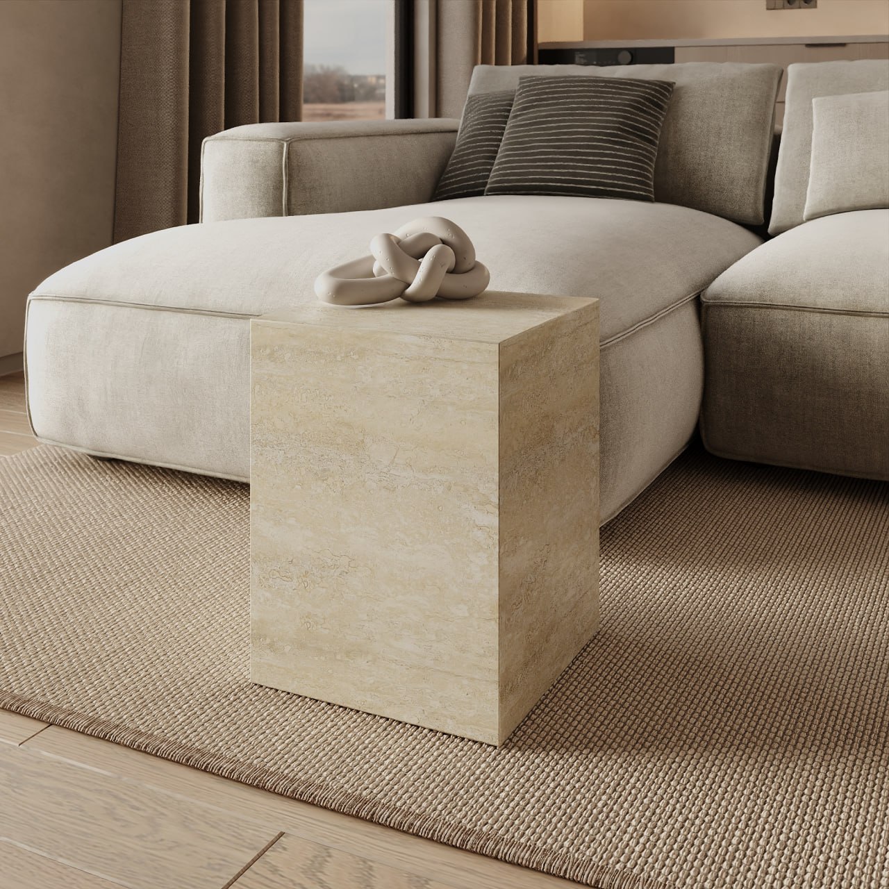 Кофейный стол КОНКРЕЦИЯ – это идеальное сочетание современного дизайна и природной красоты. Изготовленный из натурального травертина, он обладает уникальной текстурой и теплым оттенком, которые привнесут уют и элегантность в ваш дом. Мягкий силуэт стола подчеркивает его вневременной характер, делая его прекрасным дополнением к любому современному интерьеру.